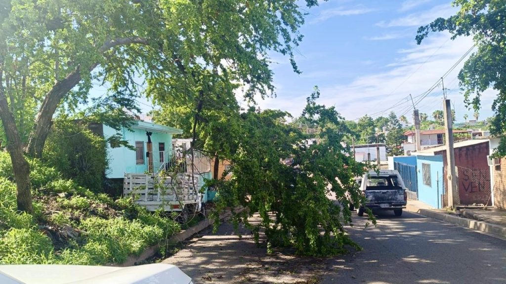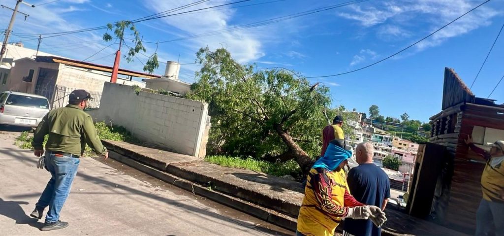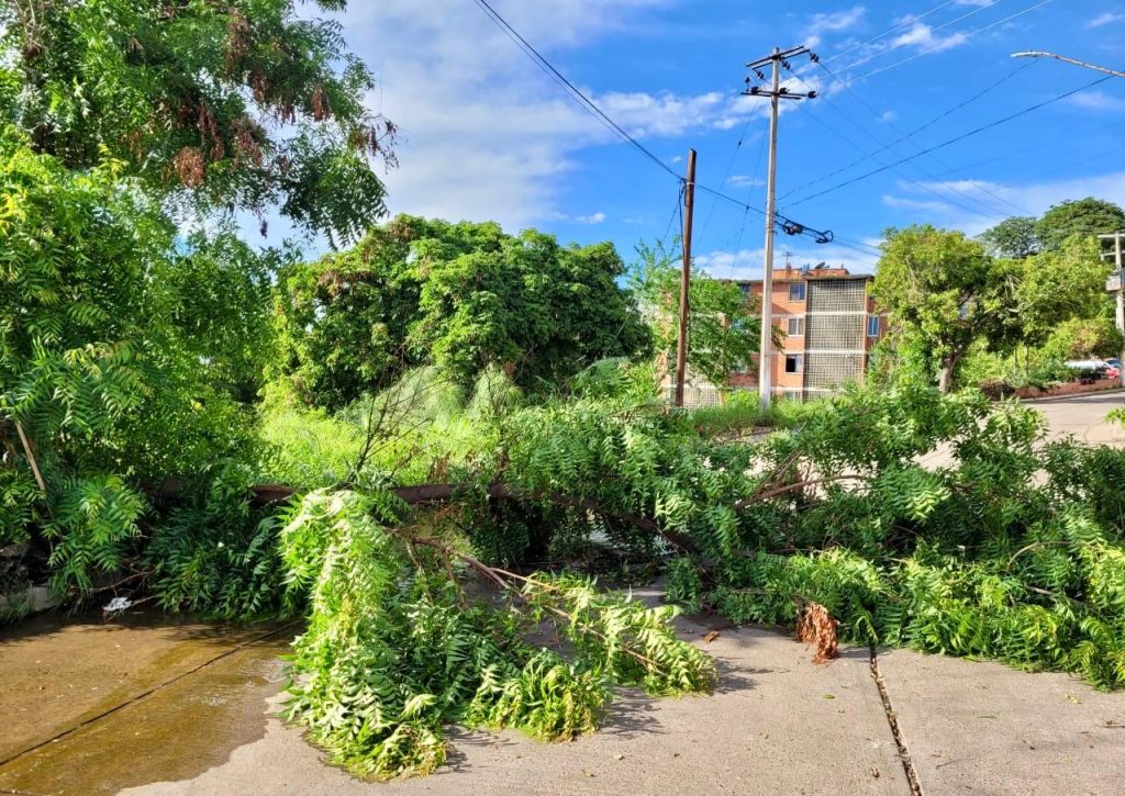 La Coordinación Municipal de Protección Civil de Culiacán, en conjunto con personal de Parques y Jardines del Ayuntamiento, llevó a cabo trabajos para el retiro de árboles y ramas que se desplomaron durante las lluvias con vientos registrados el día anterior.