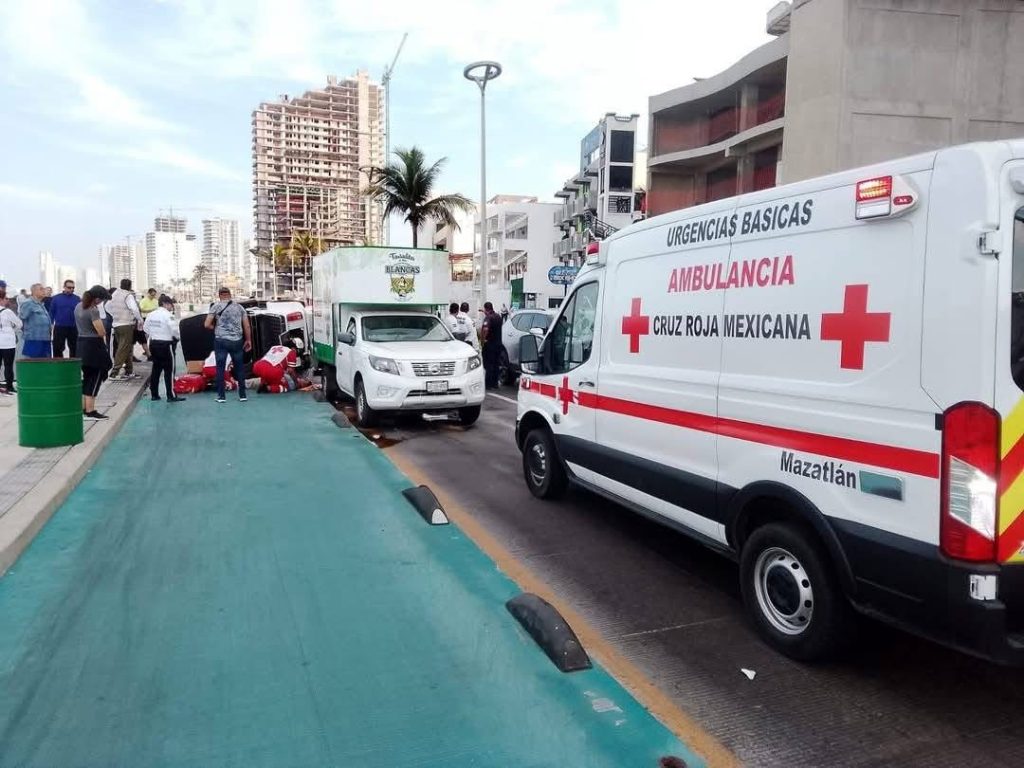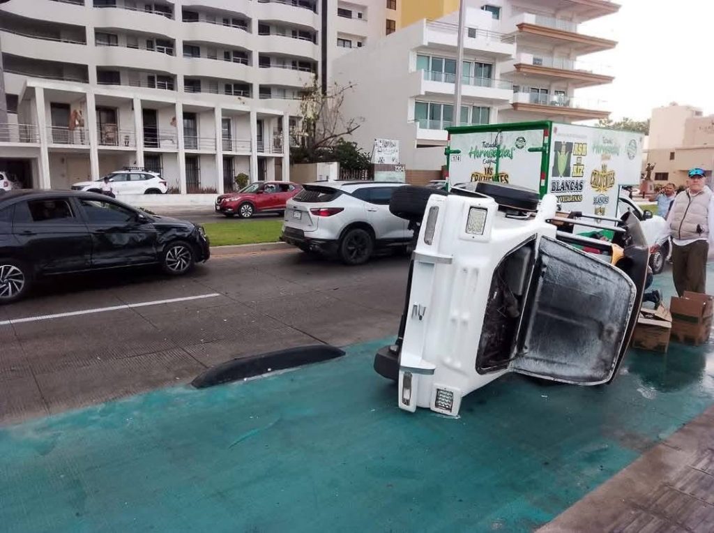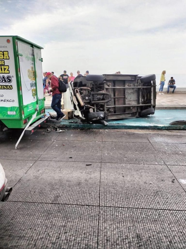 Un accidente tipo carambola se registró la mañana de este jueves sobre la Avenida del Mar, en el malecón de Culiacán, dejando como saldo una persona lesionada y una unidad de transporte público volcada.