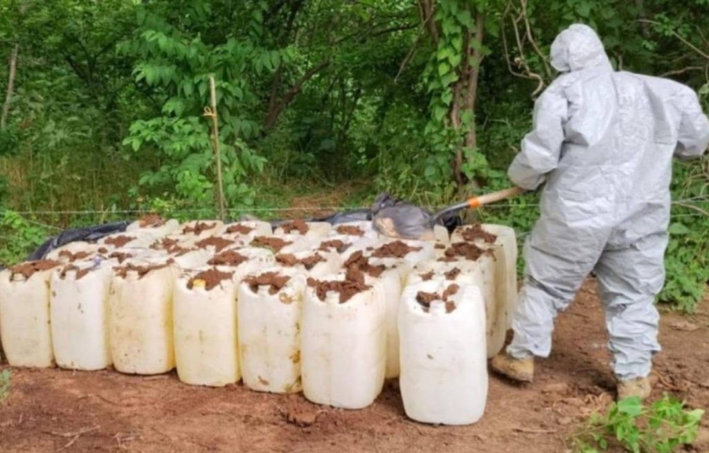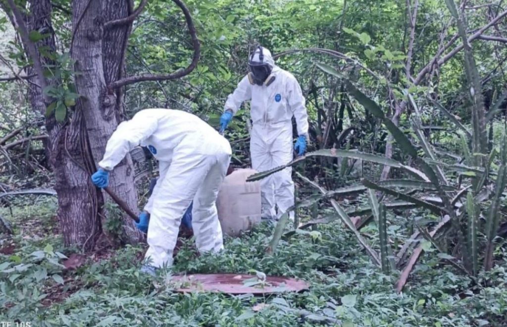 Autoridades federales y estatales aseguraron y destruyeron siete áreas de concentración de sustancias químicas y un plantío de marihuana en los municipios de Culiacán y Cosalá, como parte de la “Operación Búsqueda, Localización y Destrucción de Laboratorios Clandestinos”.