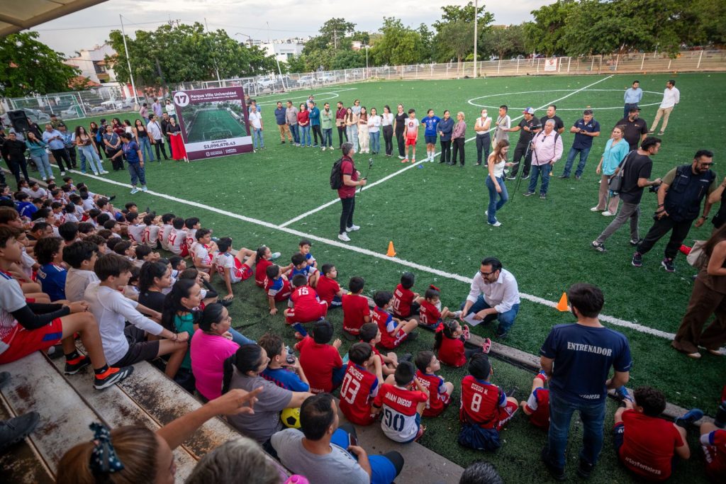 Gámez Mendívil destacó que la recuperación de espacios públicos promueve la actividad física, la convivencia familiar y la transformación social, además de fomentar el deporte desde temprana edad. Durante el evento, también se entregaron uniformes a los equipos, cumpliendo compromisos asumidos al inicio de la obra.
