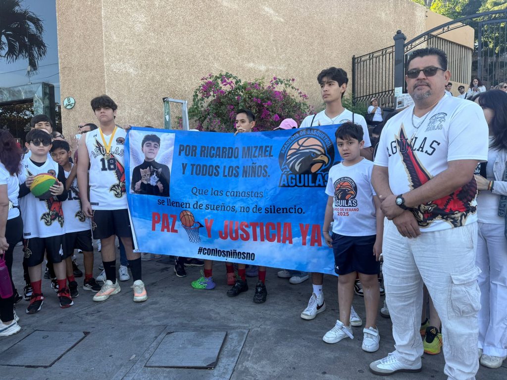 Vestidos de blanco y con pancartas en mano, familiares, amigos, compañeros de escuela y de baloncesto de Ricardo Mizael marcharon la mañana de este domingo 22 de febrero desde La Lomita hasta la Catedral de Culiacán para exigir justicia por el adolescente de 15 años asesinado el pasado 11 de febrero.