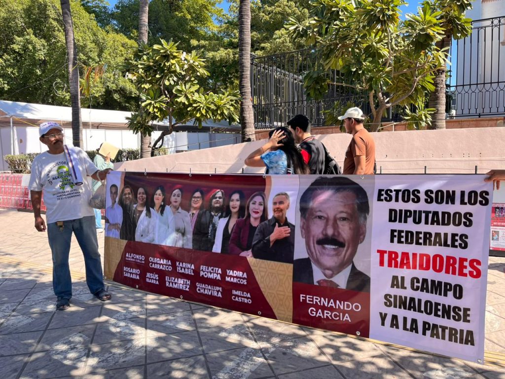 El agricultor Martín Linn realizó una manifestación pública frente a la Catedral de Culiacán para expresar, de manera individual, su inconformidad con el reciente presupuesto federal destinado al campo. Señaló a los legisladores que respaldaron el paquete económico, a quienes calificó como “traidores a la patria”. En su lista incluyó a Alfonso Ramírez, Olegaria Carrazco, Karina Isabel, Felicita Pompa, Yadira Marcos, Rosario Sarabia, Jesús Ibarra, Elizabeth Ramírez, Guadalupe Chavira e Imelda Castro, asegurando que su voto afectó directamente a los productores sinaloenses.