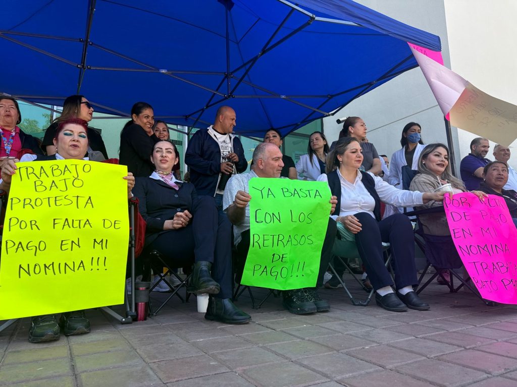 Trabajadores del sector de Salud iniciaron una manifestación permanente para exigir el pago de una quincena que no han recibido, informó la secretaria general del sindicato, Arcelia Prado.